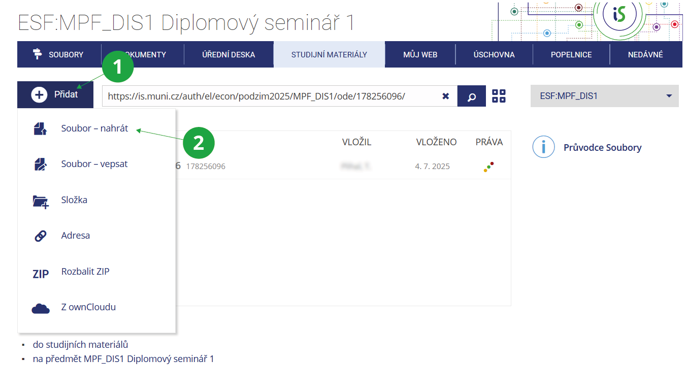 2 Jednotlivý soubor může student nahrát přes tuto možnost.